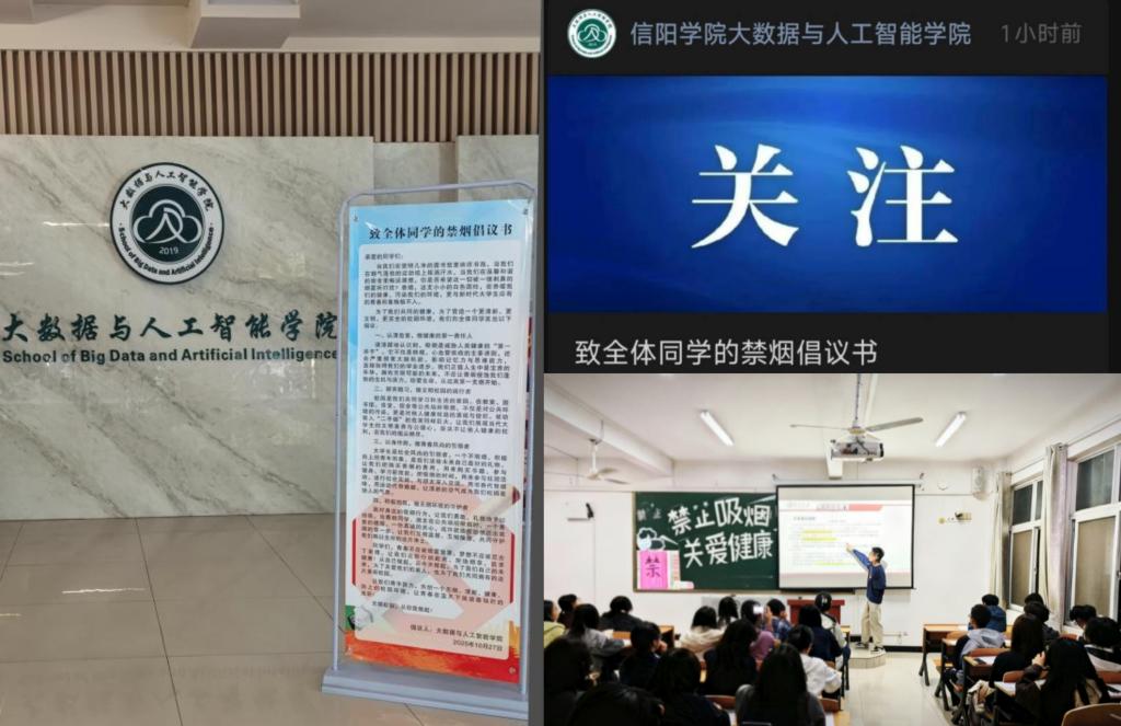 为进一步巩固精神文明建设成果,营造健康、和谐、绿色的育人环境,引导师生树立积极向上的生活观念,近日,大数据与人工智能学院面向全院师生发起了以“倡议无烟校园,同创文明新风”为主题的禁烟倡议活动,旨在全员动员、多措并举,共同打造清新宜居的无烟校园。