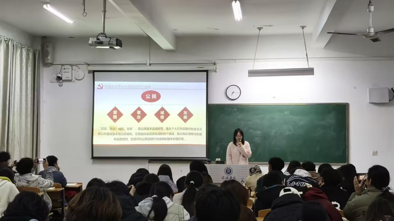 为引导广大团员和青年学生深入学习习近平文化思想,准确掌握社会主义核心价值观的丰富内涵,进而扣好人生的第一粒重要扣子,我院于11月24日晚上在人文楼112教室开展了社会主义核心价值观主题团课。此次团课由杨韫幔老师讲授。