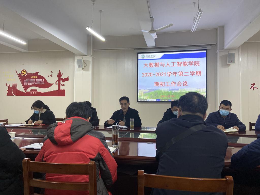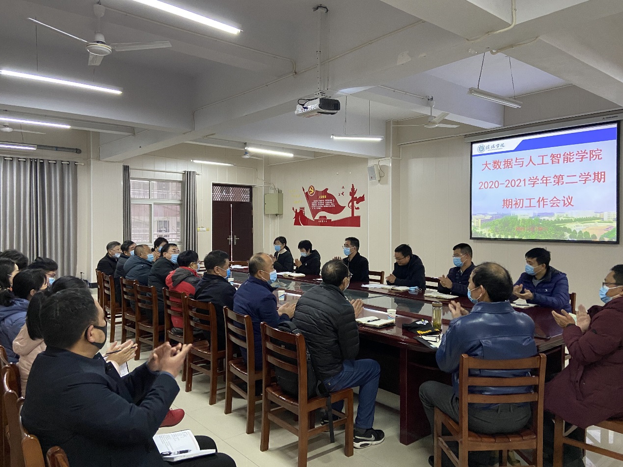 2月28日下午,大数据与人工智能学院在数计楼407召开了新学期全体教职工大会,安排部署新学期及迎评促建等有关工作。院长邬长安、党总支副书记毛凤翔、以及全体教师参加了此次会议,会议由毛凤翔主持。