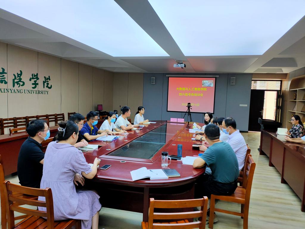 9月15日下午,大数据与人工智能学院在数计楼407召开了2022年全国大学英语四六级考试监考培训会,学院教学副院长黄俊、教学秘书贾彦茹以及全体监考教师参加了此次会议。