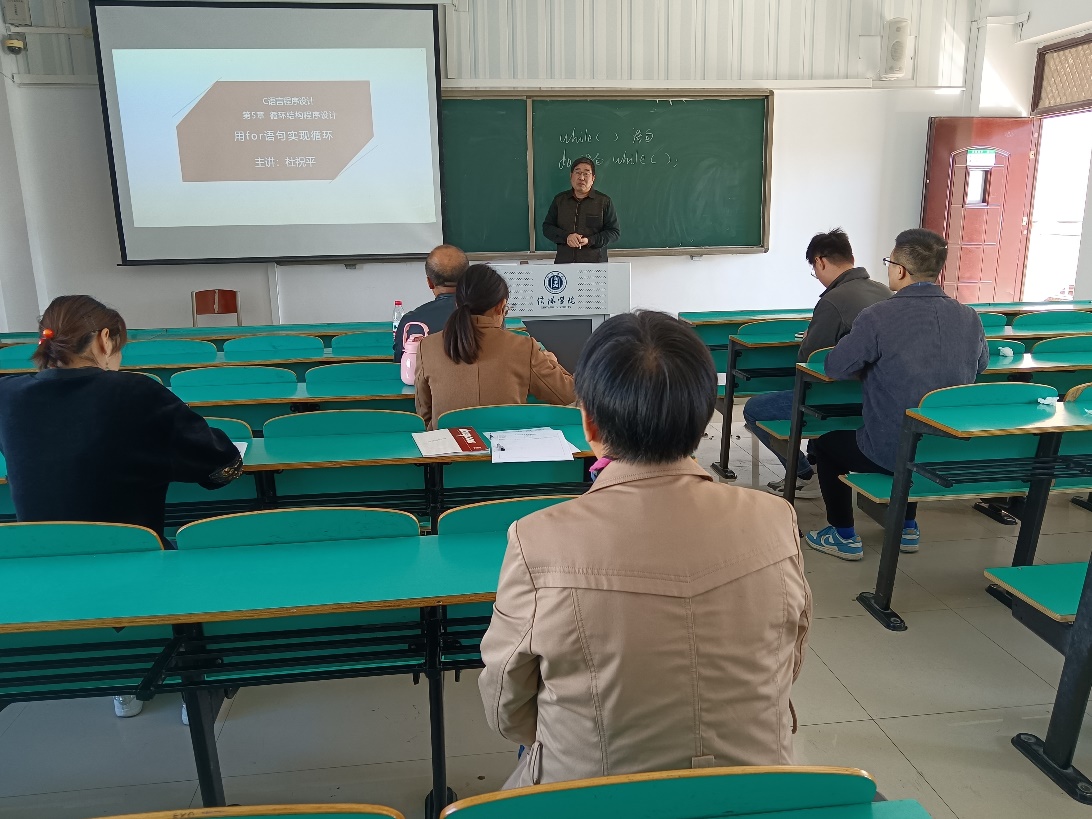 杜祝平教授选取C语言程序设计课程中“用for语句实现循环”章节进行教学。课前复习了while语句的使用方法,提出了本节课要解决的四个问题,即循环准备、循环的判断、循环工作和循环的调整,并围绕这四个问题开展了课堂讲授。杜教授在讲授for语句的语法格式时,指出来了同学们要在纪律规矩框架内做人做事,任何人都不能违反国家制定的法律法规,引导学生在国家制定的法治框架内踏实做事。在讲授求1-100的累加和的例题时,通过多种方法求解融入了能解决问题的办法有很多,不是只有一个办法,引导学生遇到问题时不要让自己陷入固定模式,要善于思考,以寻求最优的解决问题方法。在讲授扩展题目计算n!末尾有多少个0时,杜教授对题目进行深入分析,寻求最简单的解题方法,并融入了遇到难题时要想办法,转换思路,理论联系实际,对未知要不断的进行探索和创新,寻找解决方法,以此引导学生要具有科学家的工匠精神。杜教授授课逻辑清晰,准备充分,围绕立德树人根本任务,将富有家国情怀、职业情怀、工匠精神的思政元素浸润到所学知识,深入浅出富有激情,参与听课的老师纷纷感慨收获良多,意犹未尽。