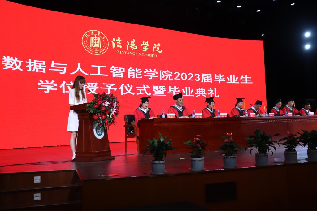 6月3日上午,大数据与人工智能学院2023届毕业生学位授予仪式暨毕业典礼在学校音乐厅隆重举行。大数据与人工智能学院院长邬长安、党总支副书记毛凤翔、教学秘书贾彦茹,特聘教授侯秀红、陈玉科、杜祝平、马学文、实验中心主任倪天伟、教研室主任师春灵等10位专家教授出席毕业典礼,共同见证2023届毕业生的重要时刻。我院毕业生、在校生代表、教师代表等200余人参加了毕业典礼,典礼由毛凤翔主持。