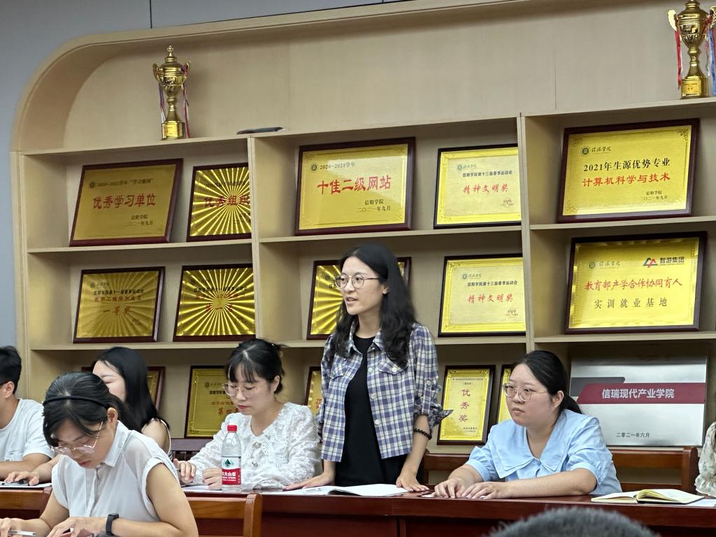 会上,今年新入职的青年专任教师和辅导员做了自我介绍,表达了将要努力学习认真工作的决心。毛凤翔传达了学校2023-2024学年新学期工作会议精神,并汇报了假期开展的毕业生就业统计、访企拓岗、招生情况等工作,并部署了新学期老生新生报到、学风建设、心理健康等学生工作。教学副院长黄俊对新学期教学工作进行安排,重点强调了上学期期末试卷和个人教学材料等教学材料的再核查、新学期的课堂教学、教学设计等相关工作。行政干事司杰就学院的宣传工作、新教师的考勤管理工作等进行了安排。
