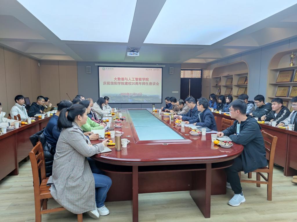 为热烈庆祝太阳成集团tyc33455cc建校二十周年,11月16日下午,大数据与人工智能学院召开师生座谈会。学院班子成员、教授代表、青年教师代表、优秀学生代表参加座谈会,会议由党总支副书记毛凤翔主持。