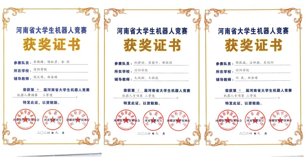 本次大赛由河南省科学技术协会、河南省教育厅、河南省科技厅联合主办,旨在推动机器人技术的发展与应用,激发青年学生的创新思维和动手能力。涵盖了机器人设计、制作、编程等多个环节。本次比赛,学院鼓励参赛者跳出传统思维框架,探索未知领域,激发创新意识和创造力,我院智能机器人团队开辟了3个新赛道具有深远的意义。在指导教师的带领下,经过数月的精心准备和刻苦训练,围绕解决实际问题和完成特定任务展开,要求参赛者设计、构建并编程控制机器人,均取得了优异成绩。