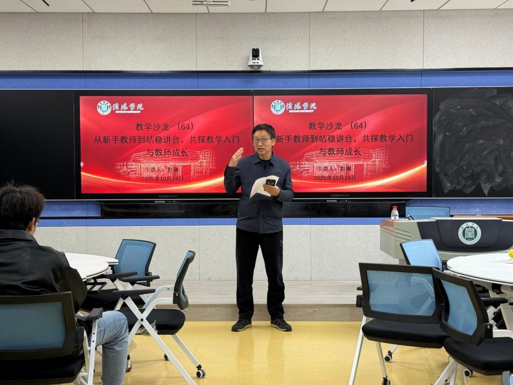 10月14日下午,由大数据与人工智能学院承办的题为“从新手教师到站稳讲台,共探教学入门与教师成长”的教学沙龙活动在人文楼南楼智慧教室111圆满完成。活动邀请赵琳老师主讲,与来自学院的40余名教师围绕这一主题展开了研究与探讨。活动由教师教学发展中心孟宪乐主任主持。