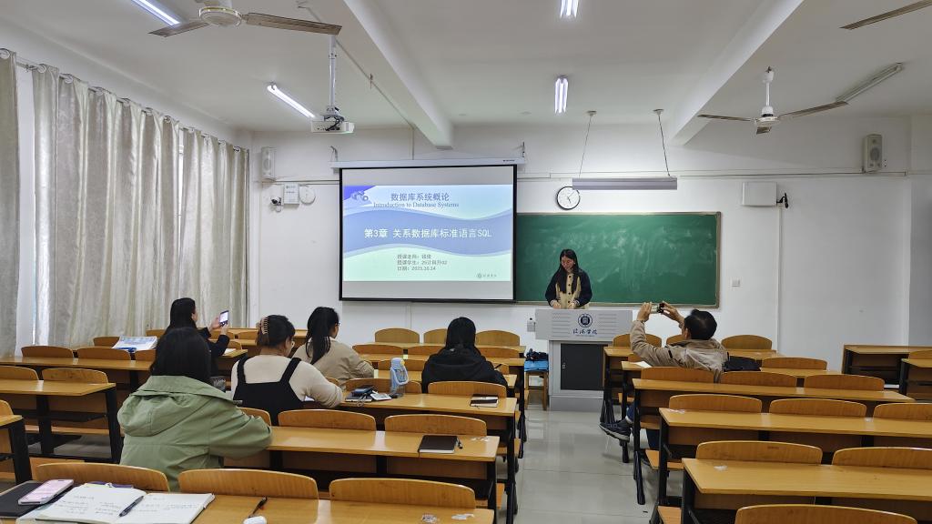 随后,钱俊老师主讲了《数据库原理及应用》课程中的“SQL数据查询”部分。她重点讲解了单表查询的核心语法,通过实例演示如何编写查询语句,帮助学生掌握精准提取数据的方法,并培养其逻辑思维能力。