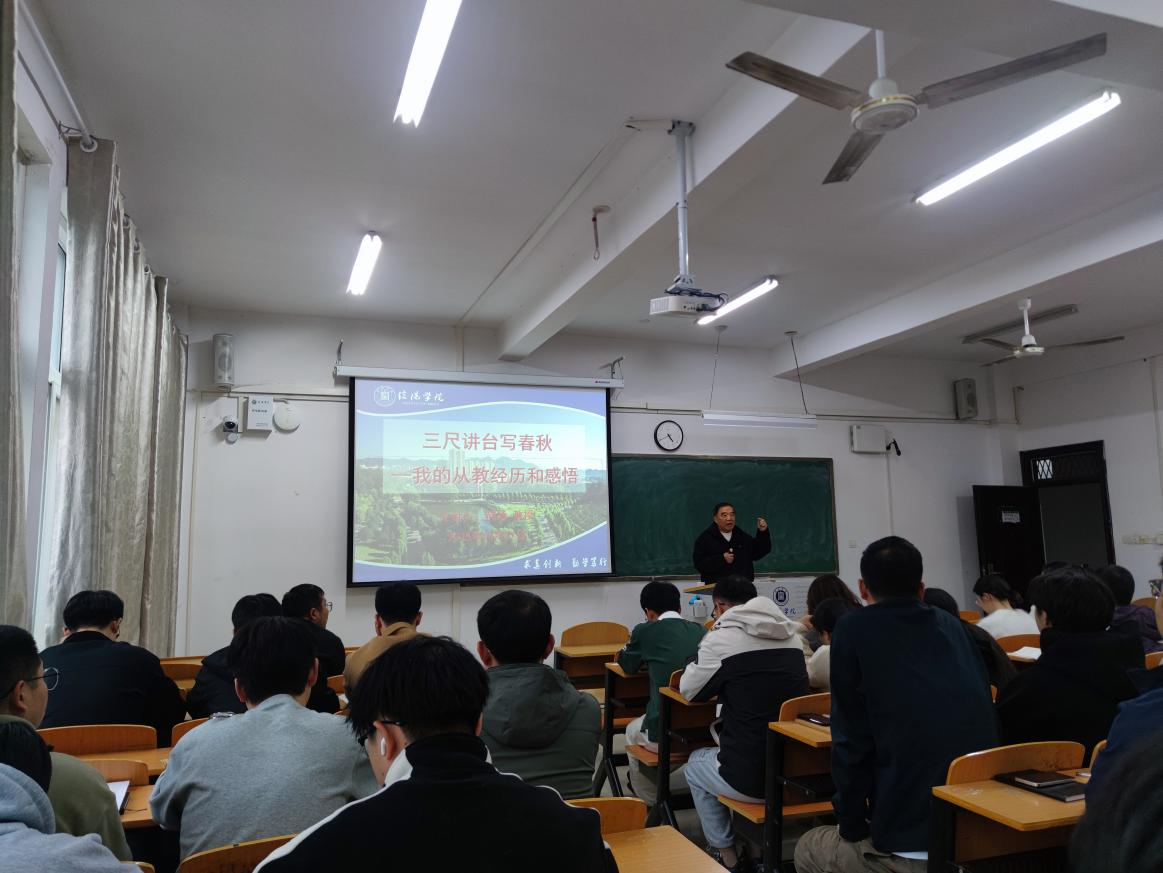 10月17日下午,大数据与人工智能学院邀请了郝涌教授作了题为“三尺讲台写春秋——我的从教经历和感悟”的学术讲座。大数据与人工智能学院全体青年教师在人文楼312教室聆听了讲座,讲座由产业学院院长贾彦茹主持。