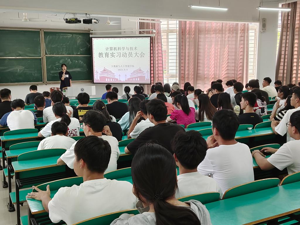 9月8日上午,计算机科学与技术专业教研室在数计楼106教室召开2024届毕业生实习动员大会,计算机科学与技术专业负责人张雪老师向大家介绍本次教育实习的目的及意义,要求大家重视本次教育实习经历,在实习中锻炼、提升自身能力。其次,向大家强调安全问题,遵守实习单位的行为准则,有问题时,主动跟带队实习老师沟通。要求同学们保持谦虚、认真的实习态度,多学习,多向前辈们请教。毕业实习是高等教育人才培养过程中一个重要的实践性教学环节,是每一位毕业生都要完成的课程。在思想上要高度重视并正确认识毕业实习的学习任务,合理分配时间,保质保量地完成实习任务,认真撰写实习相关材料,顺利完成此次教育实习。
