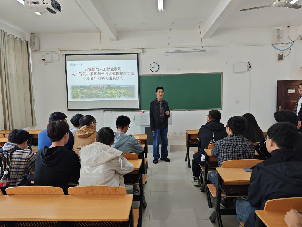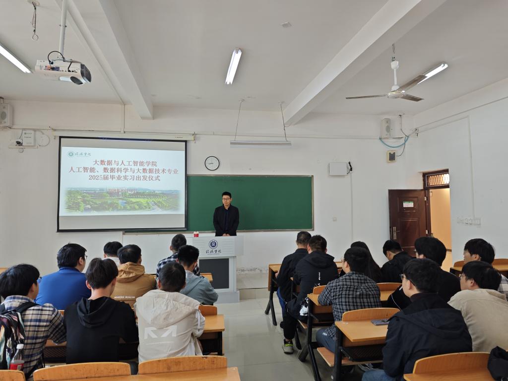 为全面做好毕业生毕业实习工作,贯彻落实学校高质量就业要求,切实提高学生就业竞争力和社会适应力,2024年10月14日上午,大数据与人工智能学院在人文楼112举行了2025届毕业生实习出发仪式,院长邬长安,党总支书记郭二军,带队指导教师、毕业班辅导员,及人工智能、数据科学与大数据技术专业20余名毕业生参与仪式。
