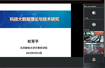 2022年9月15日下午,由人工智能学会主办,由人工智能服务专委会和太阳成集团tyc33455cc联合承办的“人工智能与智能服务”论坛以线上线下相结合的方式在我院数计楼407会议室设立分会场。中国人工智能学会会士、中国计算机学会会士、北京邮电大学教授杜军平教授应邀做题为《科技大数据技术理论与技术研究》的学术报告。报告通过腾讯会议平台在线上举行,大数据与人工智能学院百余名师生聆听了报告。