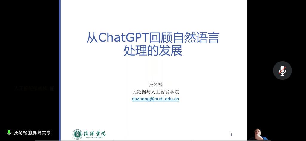 4月12日晚,河南省教育厅学术技术带头人,国家公派英国哈德斯菲尔德大学访问学者张冬松博士应邀作了题为《从ChatGPT回顾自然语言处理的发展》的线上学术讲座,大数据与人工智能学院党总支副书记毛凤翔、学工干事鄢杰及学院百余名学生在数计楼105教室聆听了报告,报告由毛凤翔主持。