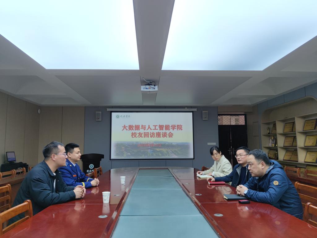 3月15日下午,大数据与人工智能学院2020届校友杨坤和2021届校友岳昊旻回访母校,学院党总支副书记毛凤翔、行政干事司杰和学工干事鄢杰在数计楼407会议室热情接待了返校校友,并进行了座谈交流。