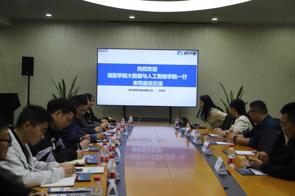 新开普电子股份有限公司营销总监吉宾,人力资源与运营支持总监常海梦,产品研发业务总监马振刚,城市办经理李巍对学院一行表示热烈欢迎,并同学院领导老师一起参观了公司文化科技展示中心。人力资源专员王琳对公司的发展历程、前瞻创新技术、高端工艺设备、产品市场应用、公司招聘等进行了详细的介绍。