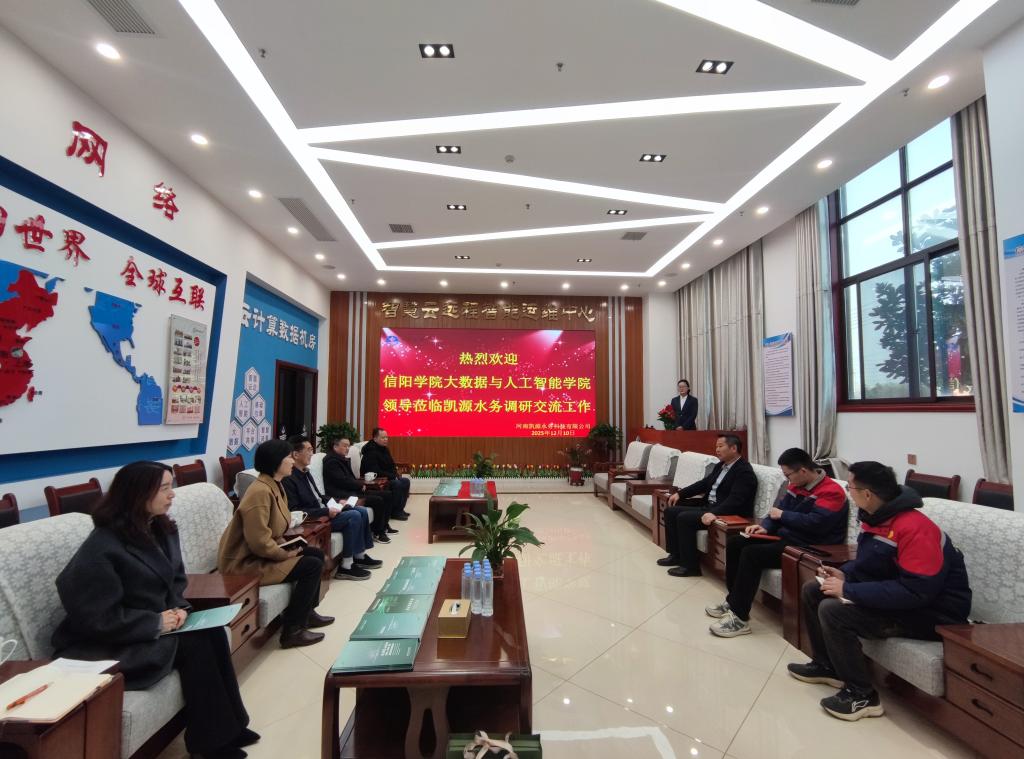 为深入贯彻落实国家关于高校毕业生就业工作的决策部署,深化产教融合、校企合作,全力促进毕业生更充分、更高质量就业,12月10日上午,院长邬长安、党总支书记高昌慧、教学副院长毛凤翔、产业学院院长贾彦茹、大数据与人工智能研究所所长张冬松一行,赴河南省凯源水务科技有限公司开展“访企拓岗促就业”专项走访调研,受到公司董事长王世伟、人力资源部门负责人、技术研发骨干及相关业务板块负责人的热情接待。