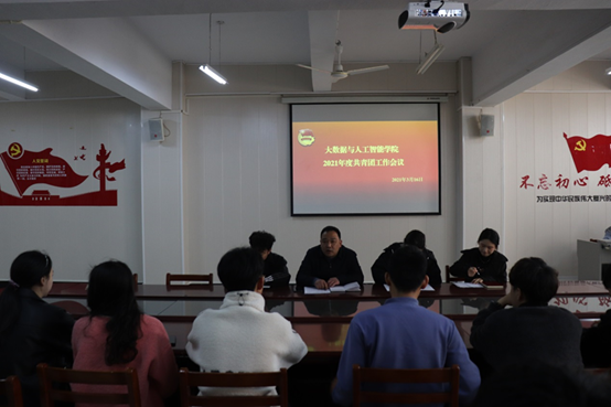 3月16日下午,大数据与人工智能学院2021年度共青团工作会议在数计楼407会议室召开。大数据与人工智能学院团总支书记鄢杰、团委组织部全体成员、各班级团支书参加会议。会议由团总支副书记陈嗣懿主持。