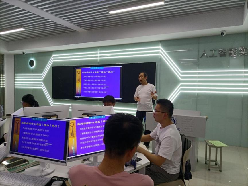 9月28日晚,数据科学与大数据技术专业发展指导在实训中心505举行,钱建刚副教授担任指导老师。钱教授就数据科学与大数据技术专业定义、升学深造、就业前景等相关问题为新生答疑解惑。