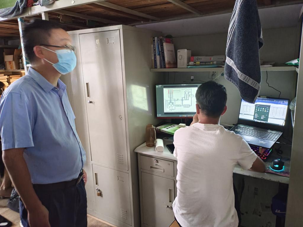 为确保我院线上教学的平稳有序和线上教学效果达标,促进学院学生宿舍形成浓厚的学习氛围,9月5日上午,大数据与人工智能学院党总支副书记毛凤翔带领学院学工队伍深入宿舍检查学生线上学习情况。