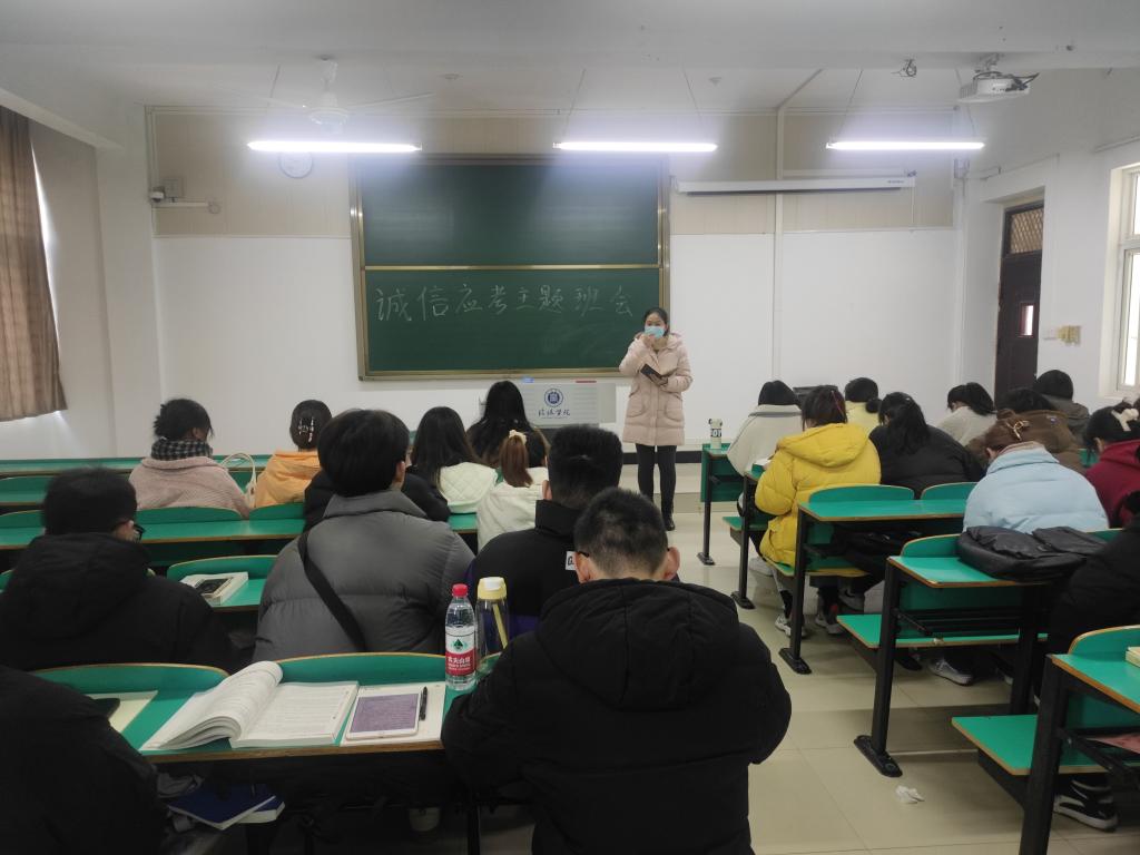 会上,各年级辅导员首先向同学们介绍了本次考试的安排与要求,帮助同学们返校后尽快收心、认真备考;接着带领大家学习了《太阳成集团tyc33455cc考试纪律与违纪处分规定》,并结合真实案例,告诉同学们考试作弊带来的危害,强调了诚信考试的重要性;最后,辅导员宣读了 “诚信考试”倡议书,同学们听后都发自内心的意识到诚信对一个人的学习和生活的重要性。