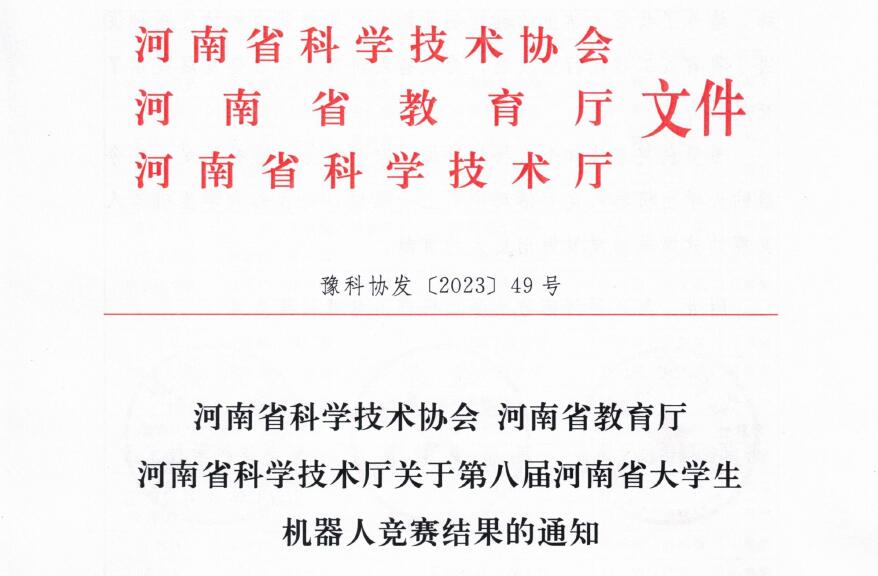 日前,由河南省科学技术协会、河南省教育厅和河南省科技厅联合主办的第八届河南省大学生机器人竞赛成绩出炉,来自河南省54所高校的519支队伍1500余名参赛选手参与本次大赛的21个赛项,我院派出两支参赛队伍首次参赛,并取得了优异成绩。