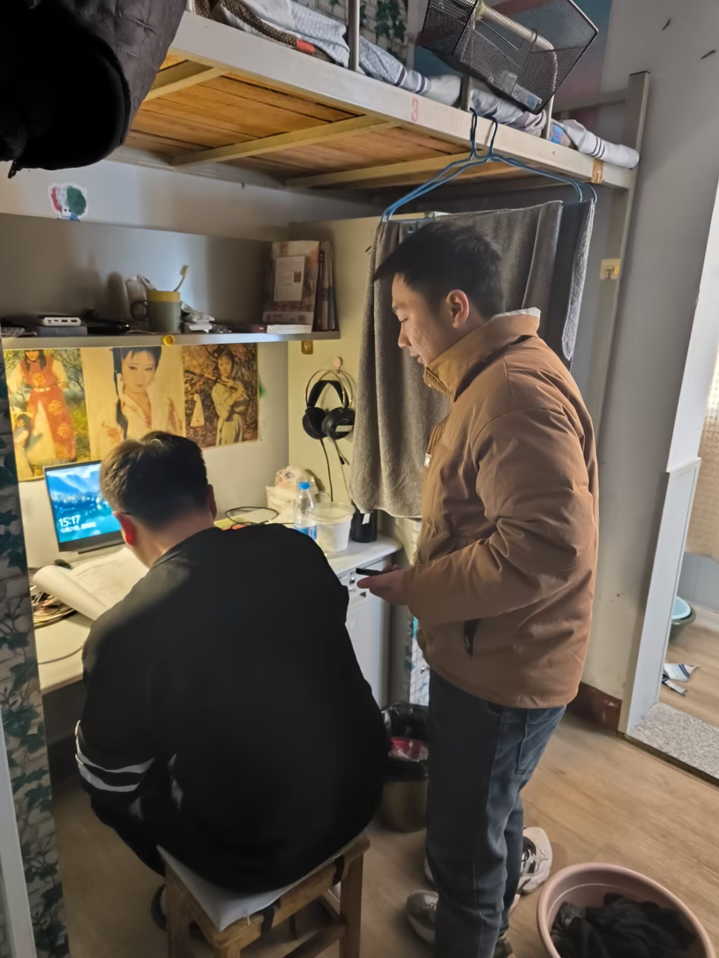 走访中,辅导员与学生们就学业进展、未来规划、心理状态进行了深入交流,并对大家提出的关于学习、生活和校园安全管理等方面的问题做了解答。辅导员还叮嘱同学们要端正学习态度,养成良好的学习习惯,加强体育锻炼,做到劳逸结合,以饱满的热情投入到学习、生活中去。