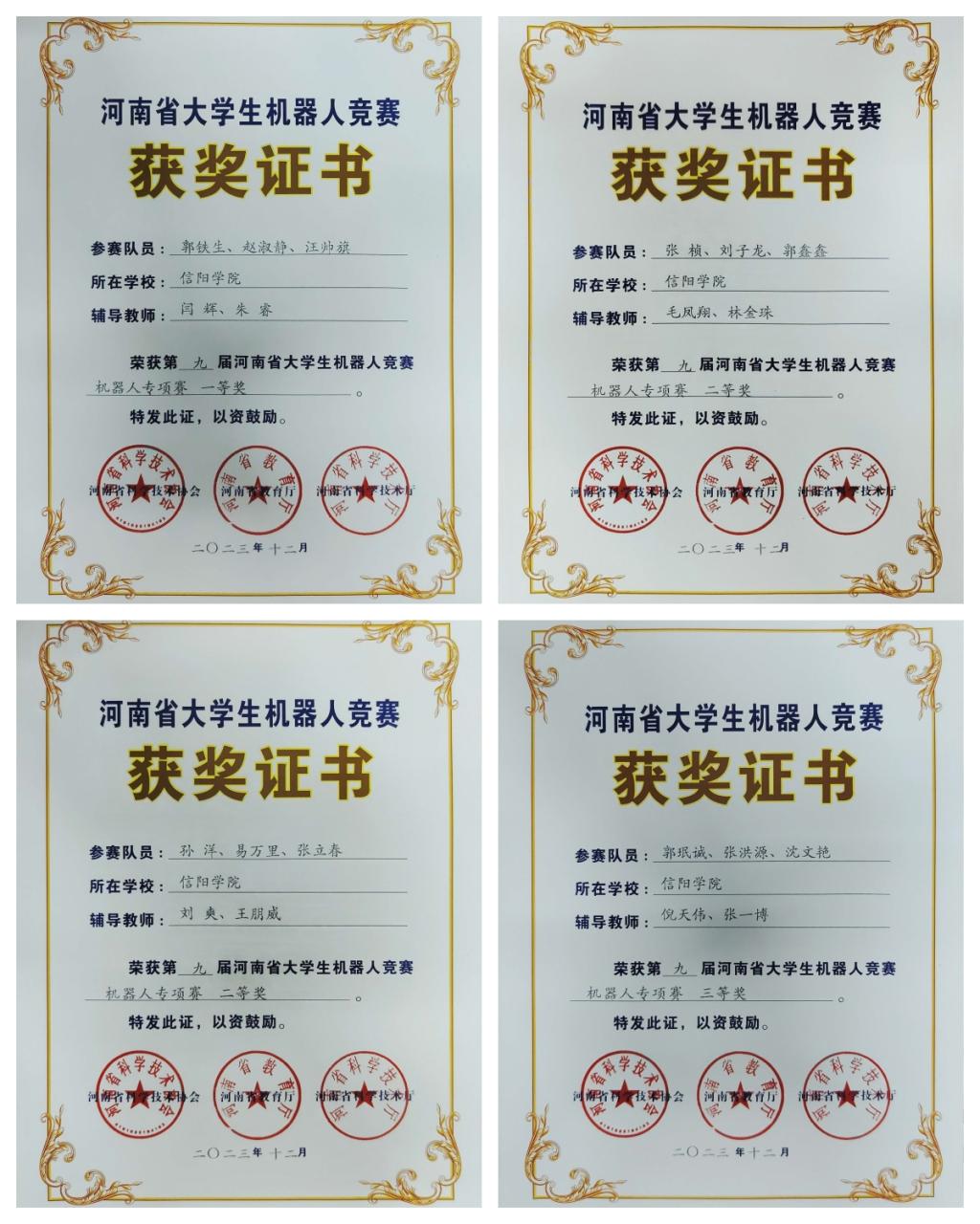 日前,由河南省科协、省教育厅、省科技厅联合主办的第九届河南省大学生机器人竞赛成绩出炉,来自省内69所高校的527支队伍2600余名参赛选手报名参加了本次比赛。大数据与人工智能学院派出四支参赛队伍参加了机器人专项赛,经过激烈角逐,我院学子最终获得一等奖1项,二等奖2项、三等奖1项的优异成绩。