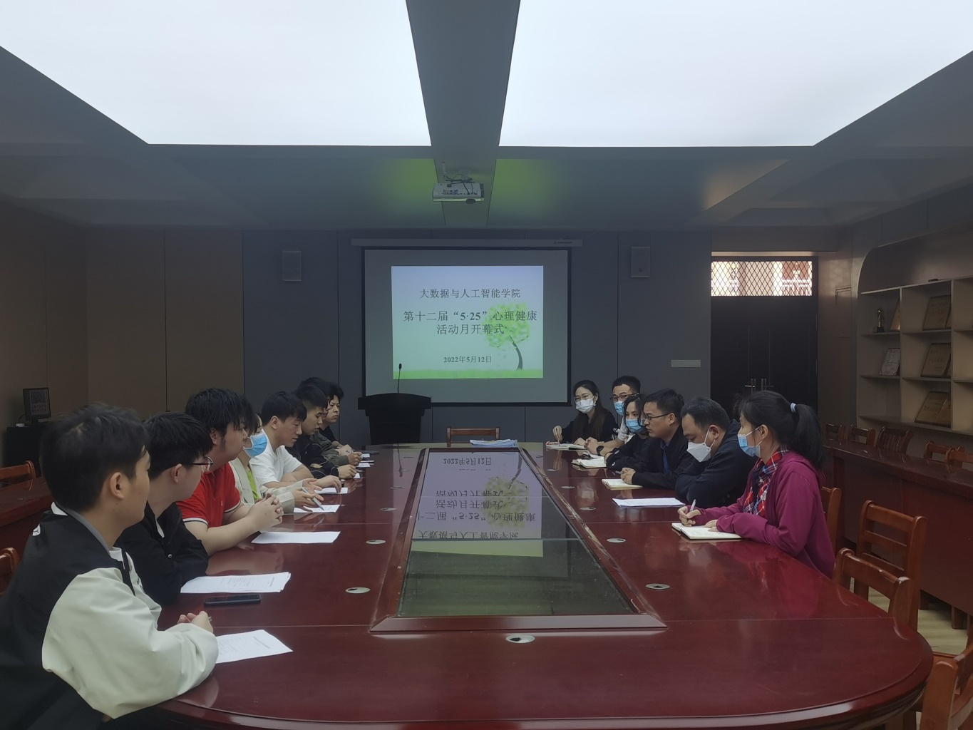 5月12日上午,大数据与人工智能学院在数计楼407会议室举行第十二届“5•25”心理健康活动月开幕式。大数据与人工智能学院党总支副书记毛凤翔、学工干事鄢杰、全体辅导员、心理健康部成员和学生代表参加了开幕式。开幕式由鄢杰老师主持。