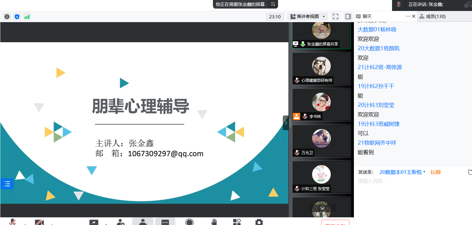 本次讲座,让学生干部认识到了朋辈心理辅导的重要性,拓宽了开展心理辅导工作的思路和渠道,为今后朋辈辅导工作指明方向。