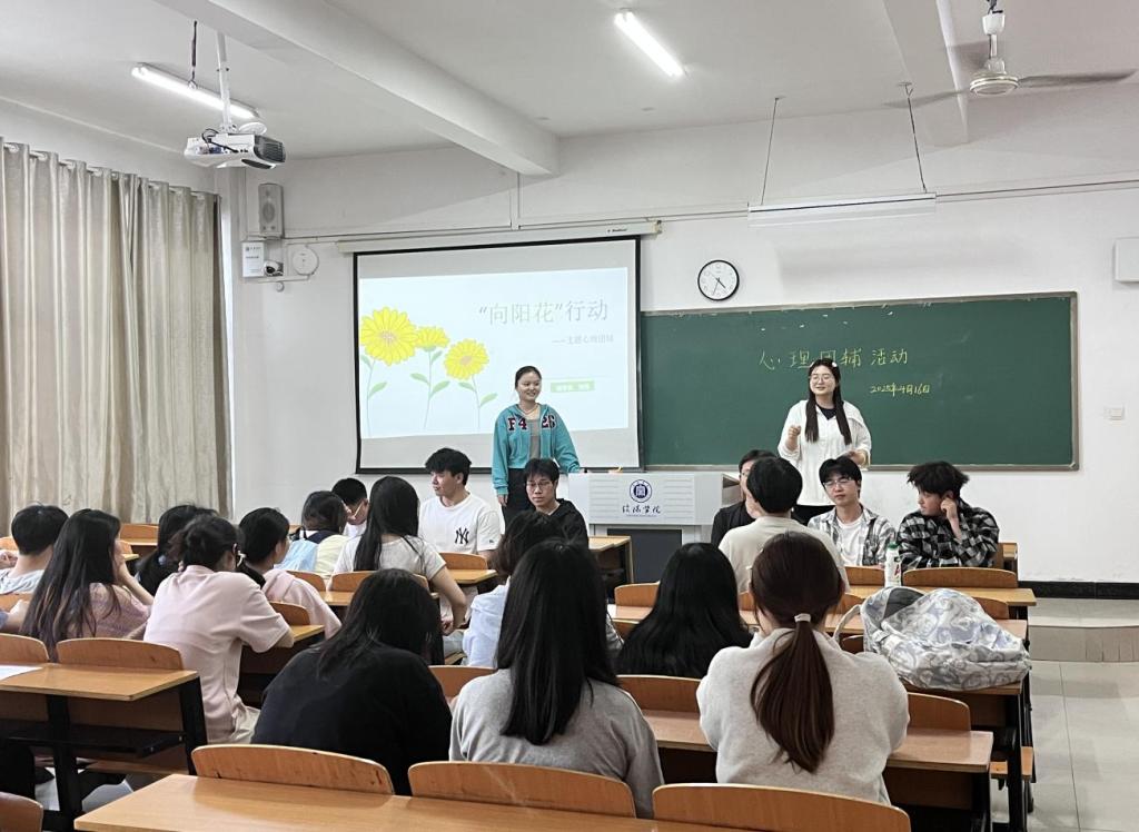 为释放学生情绪压力,培养乐观积极生活心态,4月16日下午,大数据与人工智能学院辅导员刘倩在人文楼110教室开展了一场主题为“向阳花”行动的心理团辅活动。