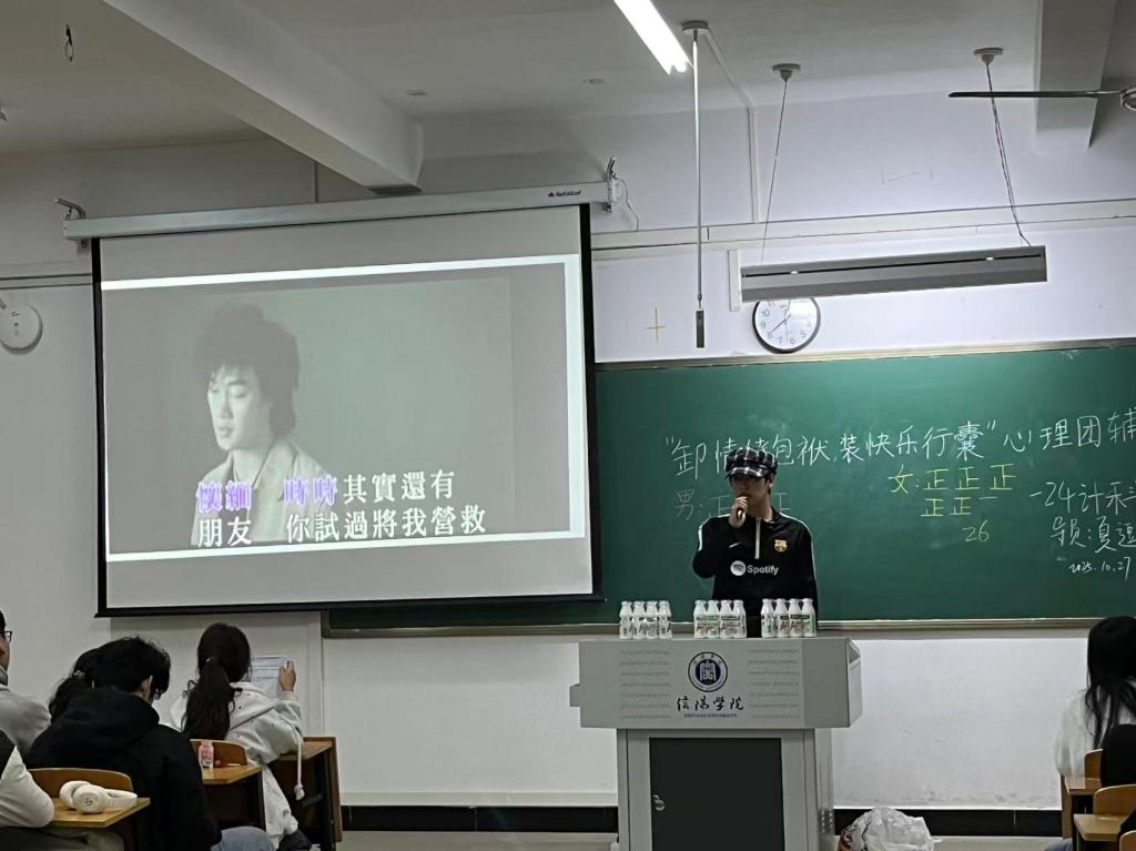 10月27日,大数据与人工智能学院24计科本03班在人文楼316教室开展了以“卸情绪包袱,装快乐行囊”为主题的心理团辅活动。活动由辅导员夏逗逗和全体班委精心组织,旨在通过一系列轻松有趣的互动环节,帮助同学们认识情绪、释放压力、发现快乐,为心灵“减负充电”。