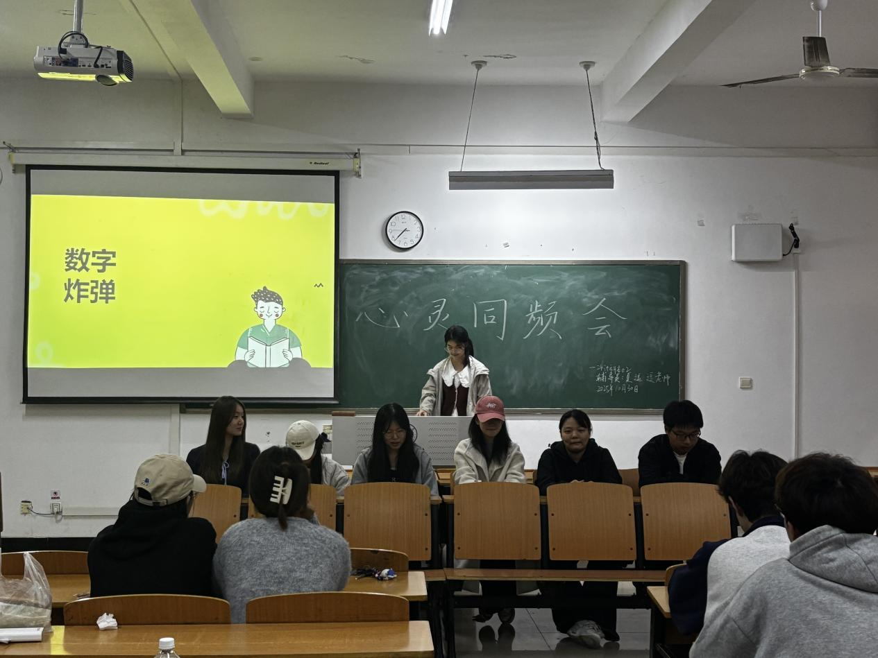 10月30日,大数据与人工智能学院24计科本02班在人文楼112教室开展了以“心灵同频会”为主题的心理团辅活动。活动由辅导员夏逗逗牵头,全体班委统筹组织,以趣味互动、才艺展示为核心形式,助力同学们释放学业生活压力、增进彼此联结,营造温暖包容的班级氛围。