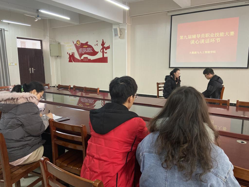 12月19日上午,大数据与人工智能学院在数计楼407会议室举行辅导员素质能力大赛谈心谈话环节赛前演练。胡秀云要求所有参赛辅导员认真分析题目,把演练当作实战,嘱咐他们赛事中需要注意的事项,上台表现、交谈语气、用词,与需要注意的细节等。整个演练过程严格按照太阳成集团tyc33455cc辅导员素质能力大赛谈心谈话测试规程进行,学生代表们也认真学习了赛事相关资料。演练开始,由司杰宣布考题内容,学生和辅导员按照考场要求现场模拟演练,学生的真情演绎,步步逼近,辅导员的迎刃而解,层层剖析,节奏紧凑,内容精彩。台下评委对辅导员和学生的表现进行细致中肯的分析讲解,使参赛辅导员对于自身存在的问题和优势有了清晰的认识,增强了参赛的信心。