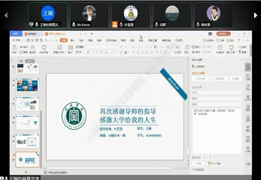 本次线上毕业答辩通过腾讯会议平台开展,网络基本顺畅,答辩过程顺利,会上各小组开启摄像头对答辩过程进行了全程录制。通过本次毕业论文(设计)的写作和答辩过程,同学们了解了论文的基本要求、基本格式和写作规范,提高了运用专业知识解决理论问题、实际工程应用问题的能力和水平,为以后的工作、学习奠定了一定的基础,也坚定了疫情期间认真做好相关毕业工作的信心。