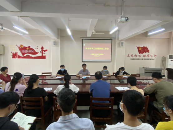 会上,胡秀云宣布学院成立期末教学工作督导小组的通知。毛凤翔传达了学校《关于对2019-2020学年评估材料建设情况进行专项检查的通知》,宣读了学院的具体工作方案,对期末线上考试、试卷归整批阅,学年教学评建检查材料的整理做出详细明确的安排。