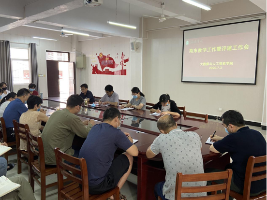 7月3日上午8点,大数据与人工智能学院在407会议室召开本学期期末教学工作暨评建工作会议,院长邬长安、党总支书记胡秀云、全体返校教师参加会议。会议由胡秀云主持。