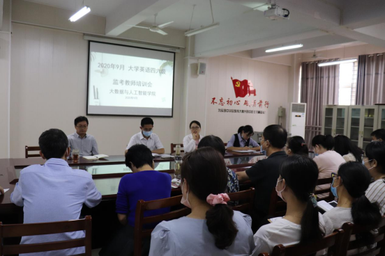 为加强考务管理,严肃考试纪律,确保考试工作安全平稳,大数据与人工智能学院于9月15日下午在数计楼407会议室召开大学英语四六级监考教师培训会。院长邬长安、党总支书记胡秀云、教学秘书毛凤翔、学工干事司杰,辅导员老师和参与监考教师。会议由毛凤翔主持。