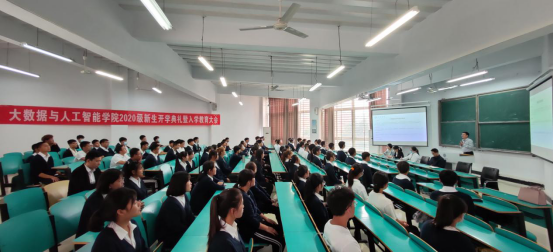 9月23日中午,大数据与人工智能学院2020年新生开学典礼暨入学教育大会在数计楼105、106举行,会议是采取线上线下相结合的方式开展。学院院长邬长安、党总支书记胡秀云、教学秘书毛凤翔、学工干事司杰,辅导员李书林、曹晴阳和2020级全体新生参加了会议。会议由胡秀云主持。