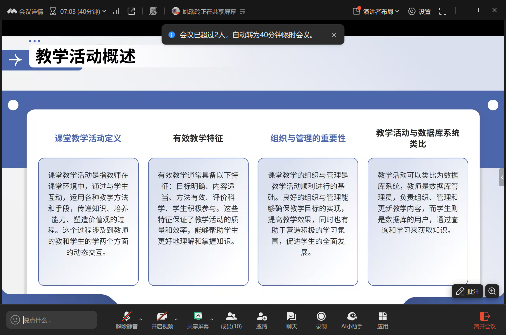 为助力我院新入职教师提升课堂驾驭能力,落实学校对新教师教学能力培养的要求,大数据与人工智能学院的姚瑞玲老师于7月25日,为2025年新入职的教师带来“课堂教学活动的有效组织与管理策略”专题培训。