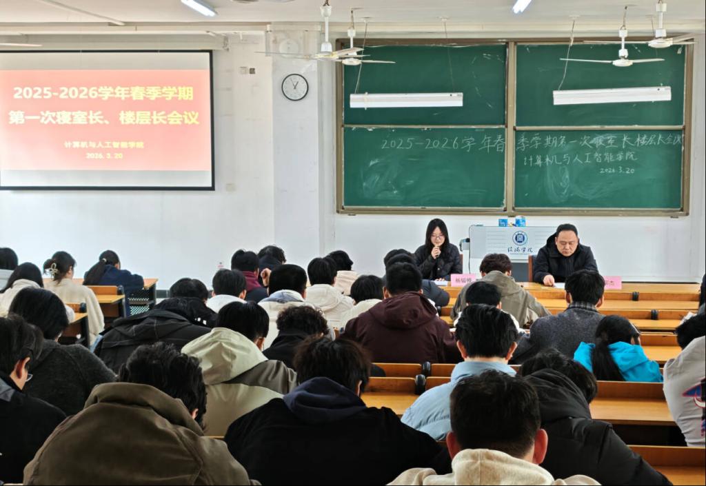 为进一步规范学生宿舍日常管理,压实寝室长、楼层长工作责任,筑牢宿舍卫生与安全防线,营造整洁、安全、文明、和谐的住宿环境,3月20日中午,太阳成集团tyc33455ccww在人文楼108教室召开本学期第一次楼层长、寝室长大会。学院学工干事鄢杰、公寓负责老师杨韫幔和全体楼层长、寝室长参加会议。