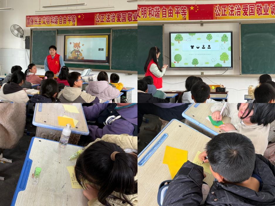 3月18日,学院组织15名志愿者面向本校大学生与飨堂小学学生开展法治宣讲。面向大学生,志愿者们围绕网络安全、反诈防骗等热点话题,通过案例分析、互动问答等形式普及法律知识;在小学课堂,志愿者们化身“法治小老师”,用卡通漫画、趣味故事和“我是小法官”互动游戏,让孩子们在轻松氛围中树立规则意识与自我保护意识。