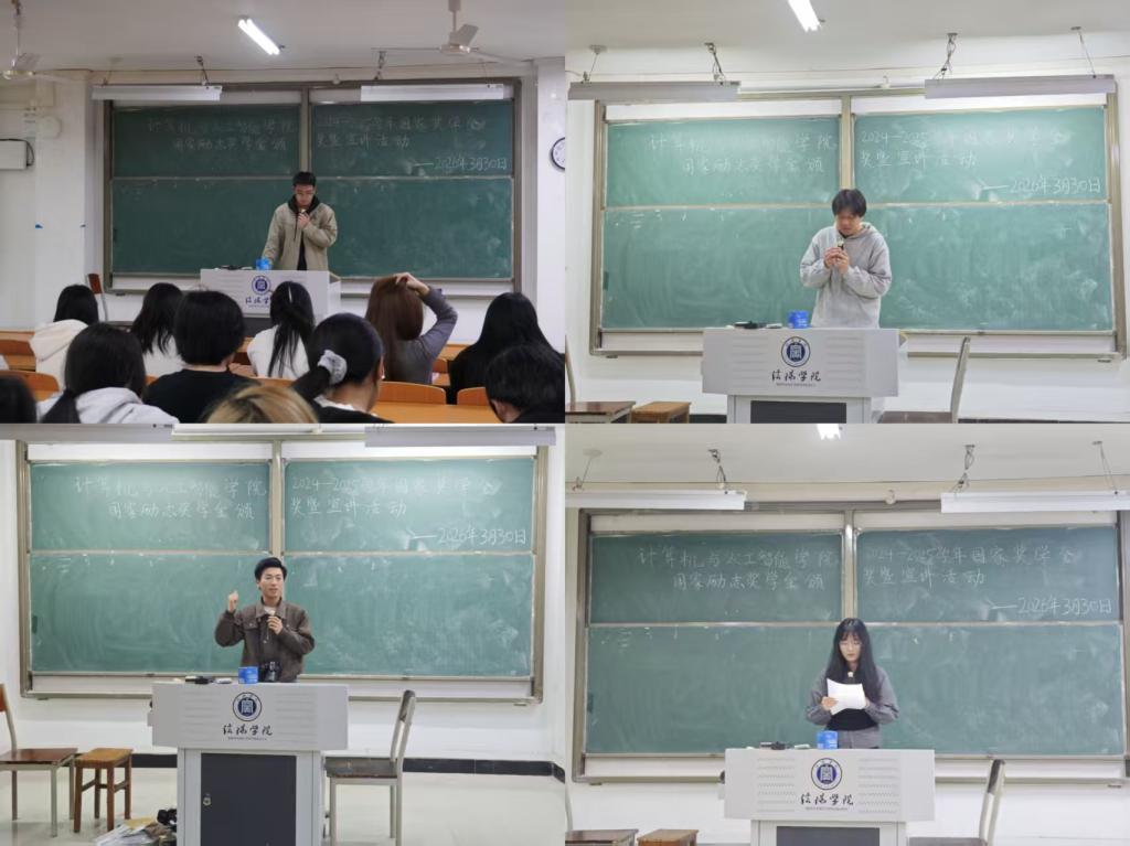 随后国家励志奖学金获得者代表王德宝、陈静、陈洛屹、田芳宇、王凯楠同学依次登台,结合各自的成长经历与奋斗故事,既有方法论的干货,也有情感上的共鸣,为在场学子带来了一场温暖而有力的分享。同学们认真聆听、积极思考,在榜样的分享中收获满满、备受鼓舞。