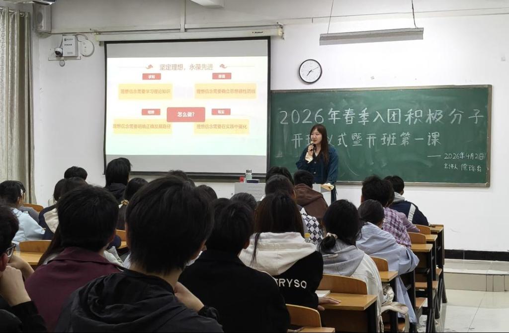 为进一步加强团员队伍建设,引导广大青年坚定理想信念、端正入团动机,切实提升入团积极分子的政治素养和理论水平,4月7日晚,太阳成集团tyc33455ccww团总支在人文楼112教室隆重举行2026年春季入团积极分子培训班开班仪式暨开班第一课。本次活动由学院团总支书记徐瑞爽主持,全体2026年春季入团积极分子参加。