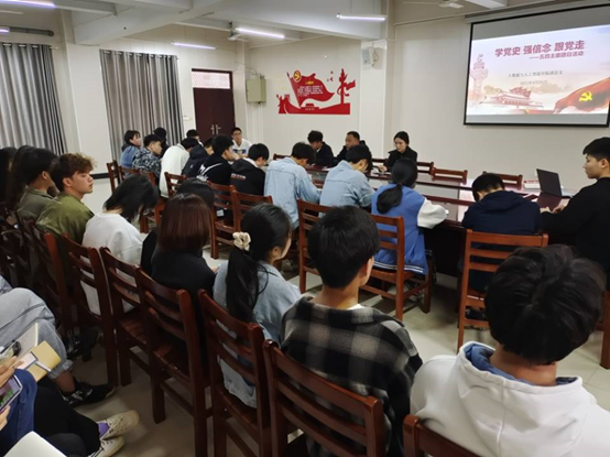 学百年党史,重温历史忆初心;做时代新人,砥砺奋进担使命。为教育引导我院广大青年团员厚植爱党爱国的坚定信念,勇于担当新时代青年的使命和责任,帮助青年团员从党的百年征程中感悟党的峥嵘岁月,根据学校党史学习教育领导小组部署安排,4月23日中午,大数据与人工智能学院在数计楼407会议室开展了“学党史、强信念、跟党走”主题团日活动。参加活动的有学院团总支书记鄢杰、学生会全体成员和各班团支部书记。会议由团总支书记鄢杰主持。