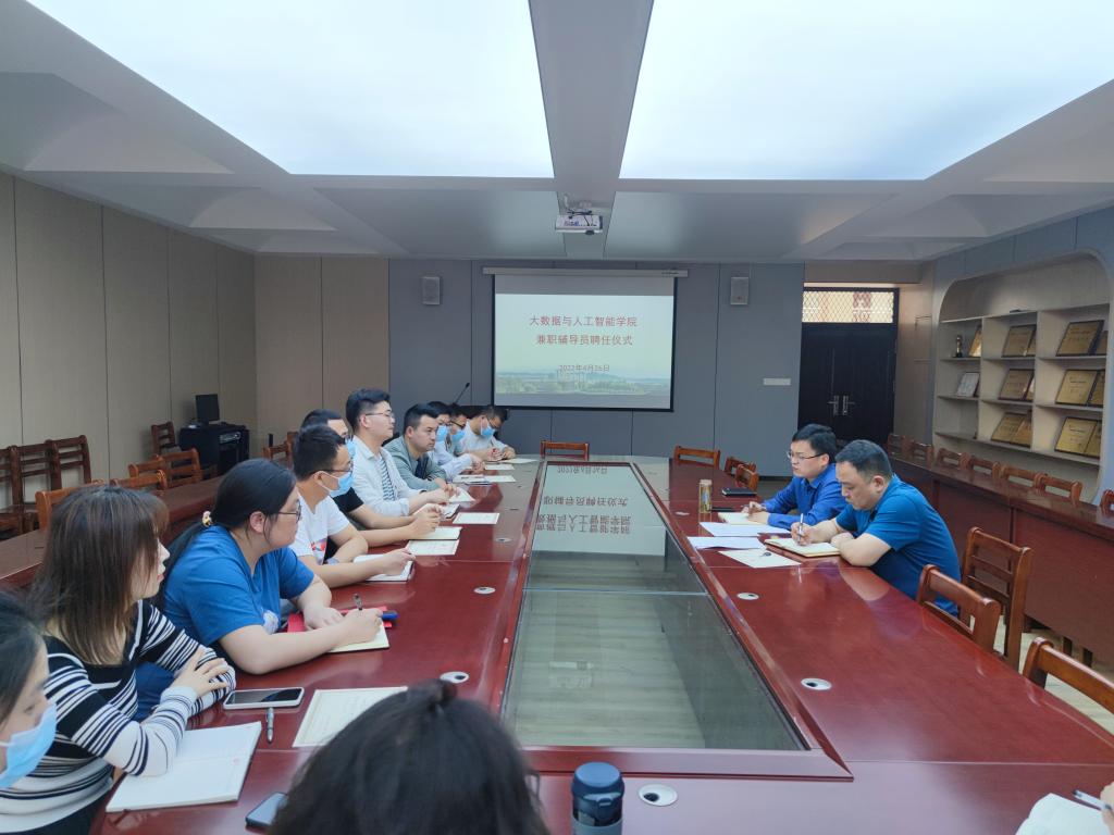4月26日下午,大数据与人工智能学院在数计楼407会议室举行了兼职辅导员聘任仪式。党总支副书记毛凤翔、学工干事鄢杰和全体专兼职辅导员参加了仪式。仪式由鄢杰主持。