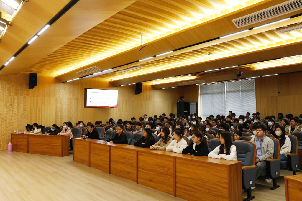 施昌海以“不负时代 不负韶华 争做堪当民族复兴重任的时代新人”为题,从回顾我国三年抗疫的非凡实践、学习贯彻党的二十大精神、勉励青年学生在新时代绽放绚丽之花三个方面展开讲授。