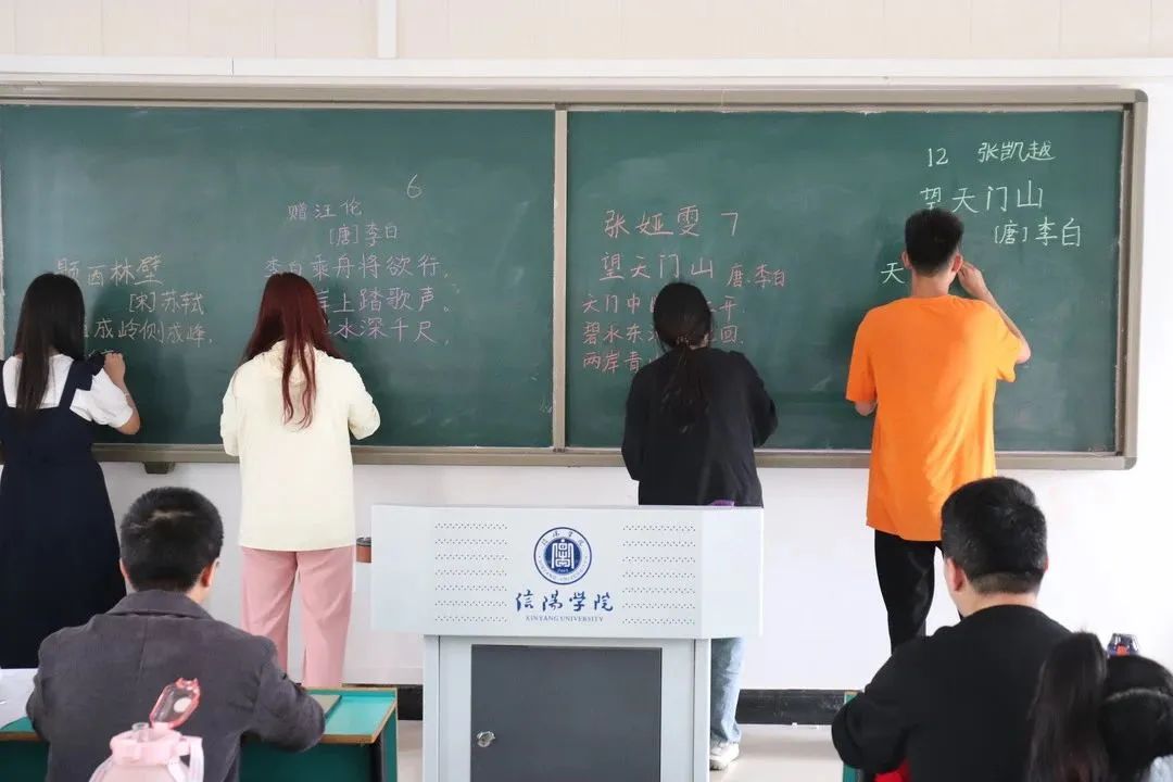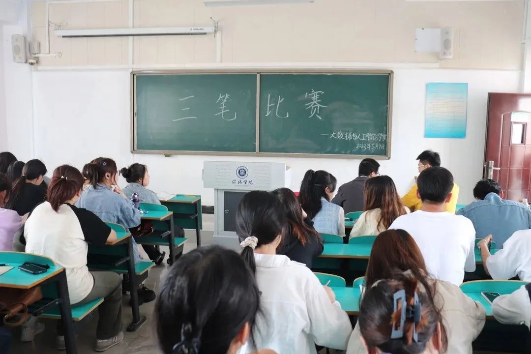 5月9日下午,大数据与人工智能学院在数计楼505教室举办主题为“书经典美文,弘中国精魂”书法大赛暨校团委第二届“三笔(硬笔、粉笔、毛笔)字”大赛选拔赛。特邀学院教师陈鹏、张海波、秦芮、樊然然、赵冉为本次书法大赛评委,徐良老师担任主持人。本次书法大赛吸引了我院各个年级众多优秀学生参加。