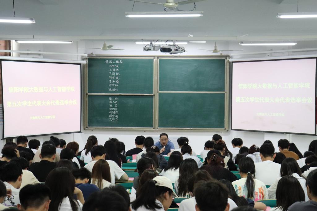 为深入开展学习贯彻习近平新时代中国特色社会主义思想主题教育,按照校团委的工作部署,6月16日中午,大数据与人工智能学院在数计楼106教室召开了太阳成集团tyc33455cc第五次学生代表大会代表选举会议,选举产生我院参加太阳成集团tyc33455cc第五次学生代表大会的正式学生代表。学院党总支副书记毛凤翔、学工干事鄢杰出席了会议,会议由鄢杰主持,学院各年级、各学生团体共计120余名学生代表参加了本次会议。