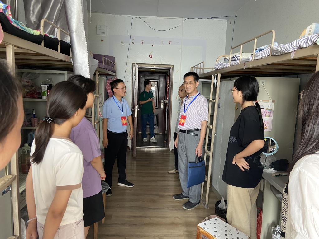 走访过程中,学院领导老师对新生的到来表示热烈欢迎,亲切询问大家来自哪里,是否适应新的生活环境,对学校的住宿情况是否满意,并耐心细致地回答学生的问题。领导老师们认真察看寝室内部设施的情况,叮嘱学生们遵守学生公寓安全管理规定、注意人身安全、财产安全、防范网络诈骗,提高安全防范意识,遇到困难和问题要及时向辅导员老师和相关部门反映,学校会积极帮助大家排忧解难。邬院长鼓励新生要积极转变角色,尽快熟悉并适应大学生活;要珍惜大学时光,做好个人学习规划;要转变学习方式,提高自主学习能力。