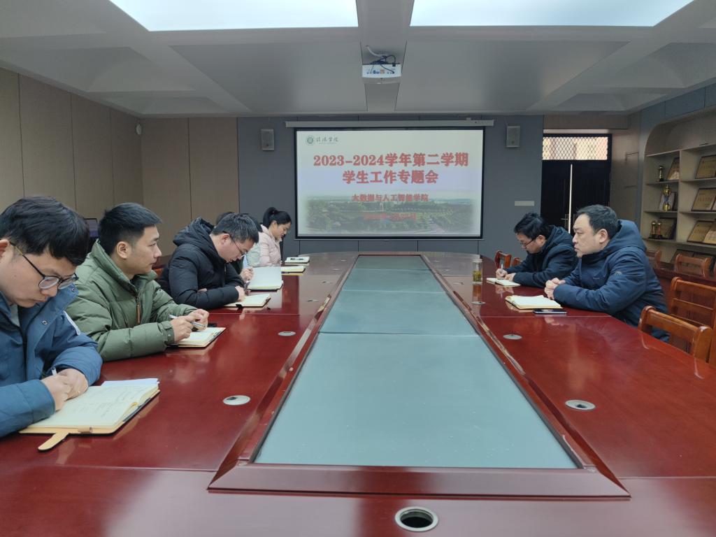为保障新学期学院学生工作平稳有序推进,进一步明确本学期学生工作思路与重点任务,2月27日上午,大数据与人工智能学院在数计楼407会议室召开新学期学生工作会议,学院党总支副书记毛凤翔、学工干事鄢杰和全体辅导员参加了会议。
