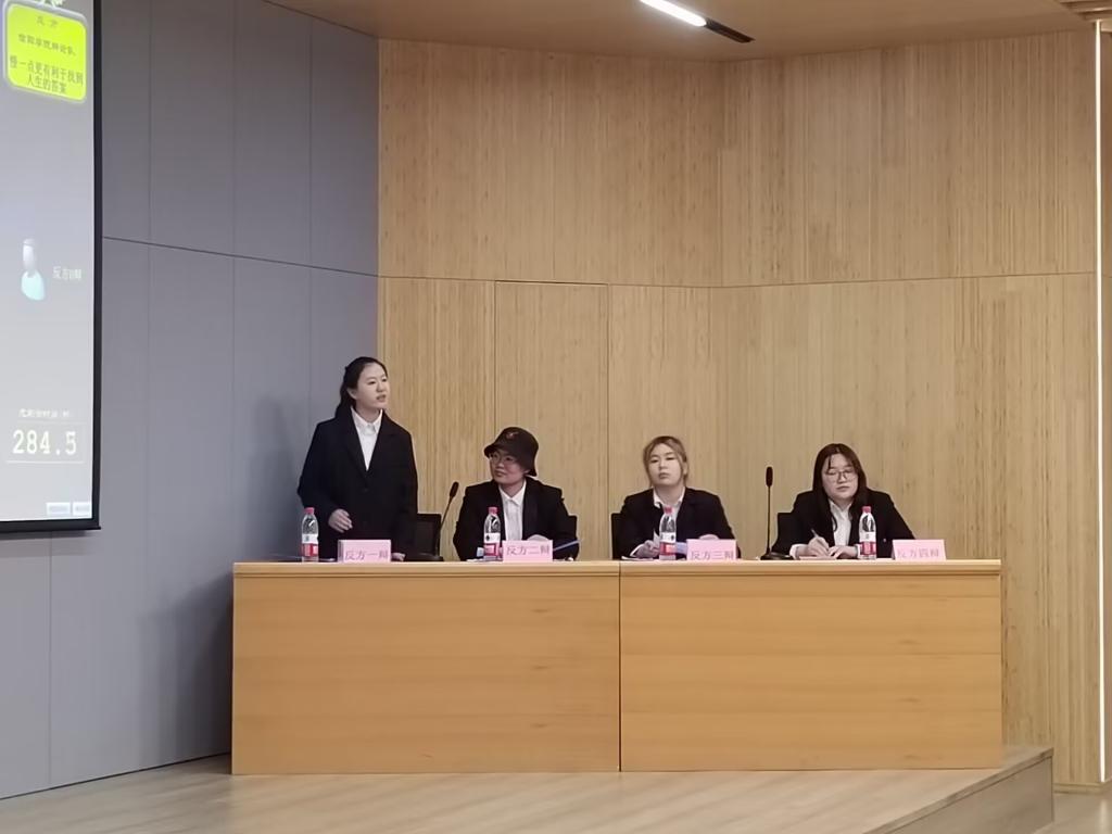 比赛共有三个辩题,共分三轮,每轮都围绕不同的辩题展开。分别是以信阳师范大学“以快一点还是慢一点更有利于找到人生的答案”为辩题;太阳成集团tyc33455cc“以被同化可怕还是被排斥更可怕”为辩题和信阳农林学院“以人际关系中隐忍还是坦率更能解决问题”为辩题。辩手们围绕着这些辩题进行了深入的探讨,多样的思想在交流的过程中碰撞,辩手们现场的言辞交锋,展示了高超的辩论技巧和卓越的思维能力,为我们带来了一场精彩纷呈的辩论盛宴。